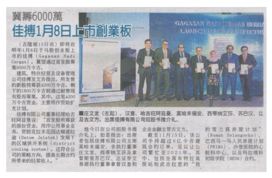 Gagasan Nadi Cergas to list on ACE Market on 8th January; Expects to raise RM60 million