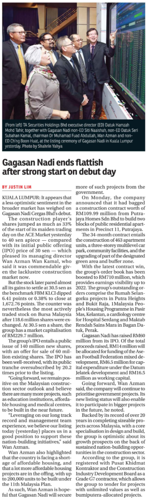 Gagasan Nadi ends Flattish After Strong Start on Debut Day